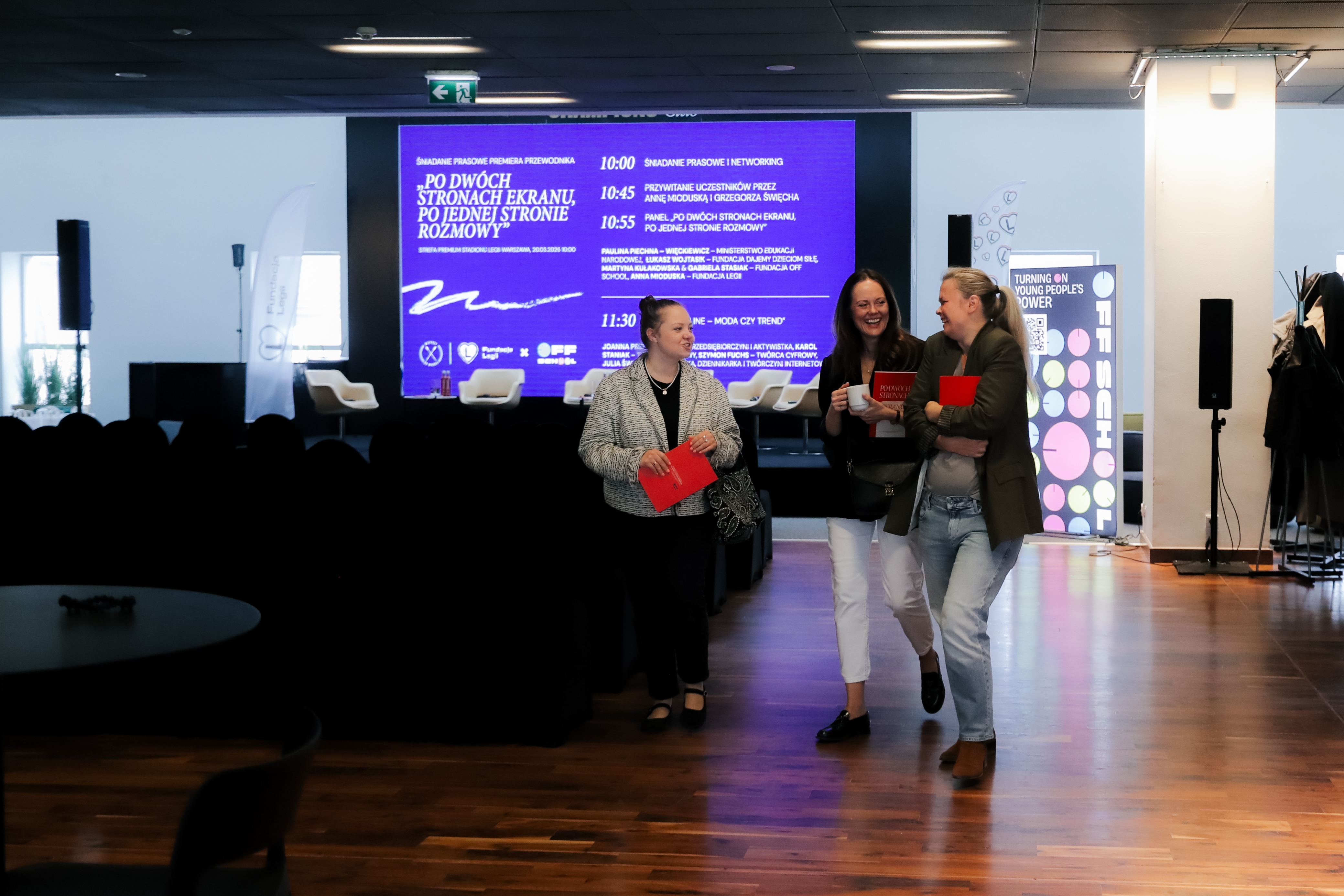 i Gabriela Stasiak (Fundacja OFF School) oraz Anna Mioduska (Fundacja Legii) rozmawiali o tym, jak nie stracić więzi z młodymi ludźmi, gdy domowe Wi-Fi coraz częściej staje się głównym łącznikiem między pokojami. Uczestnicy debaty podkreślali, że budowanie porozumienia wymaga dziś nie lęku
