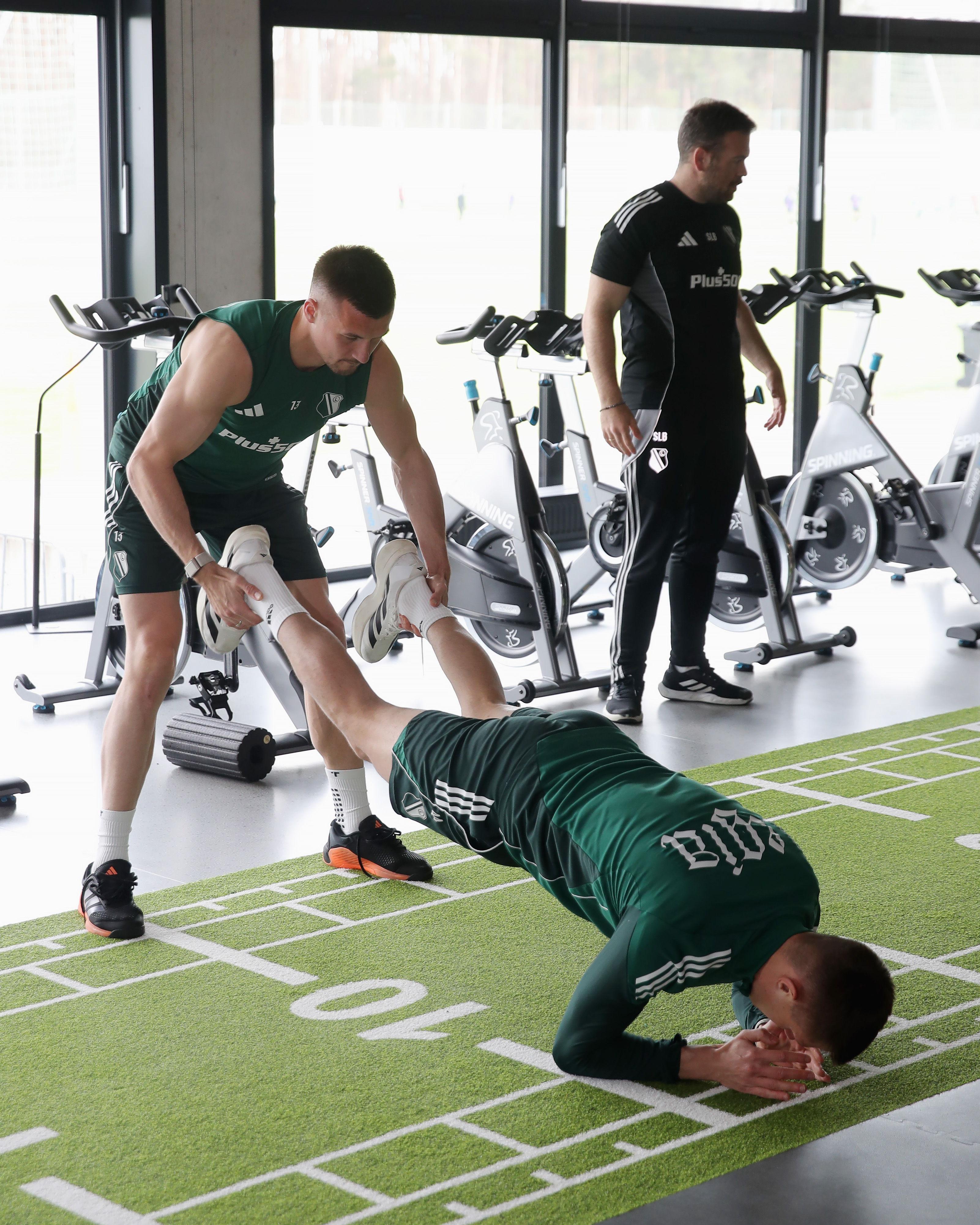 Po odprawie, aktywacji w siłowni oraz tradycyjnej rozgrzewce, legioniści rozpoczęli ćwiczenia w grupach. Zawodnicy pracowali ze sztabem szkoleniowym nad grą w obronie i ataku, skutecznością oraz szybkim rozegraniem piłki. Oddzielnie ćwiczyli dwaj napastnicy - Rafał Adamski i Mileta Rajović, którzy raz po raz skutecznie wykańczali akcje dostając piłki ze środkowych oraz bocznych stref pola karnego. Druga połowa wtorkowej jednostki to taktyka oraz stałe fragmenty gry. Kolejny trening w LTC zaplanowano na środę, na godz. 11:15.