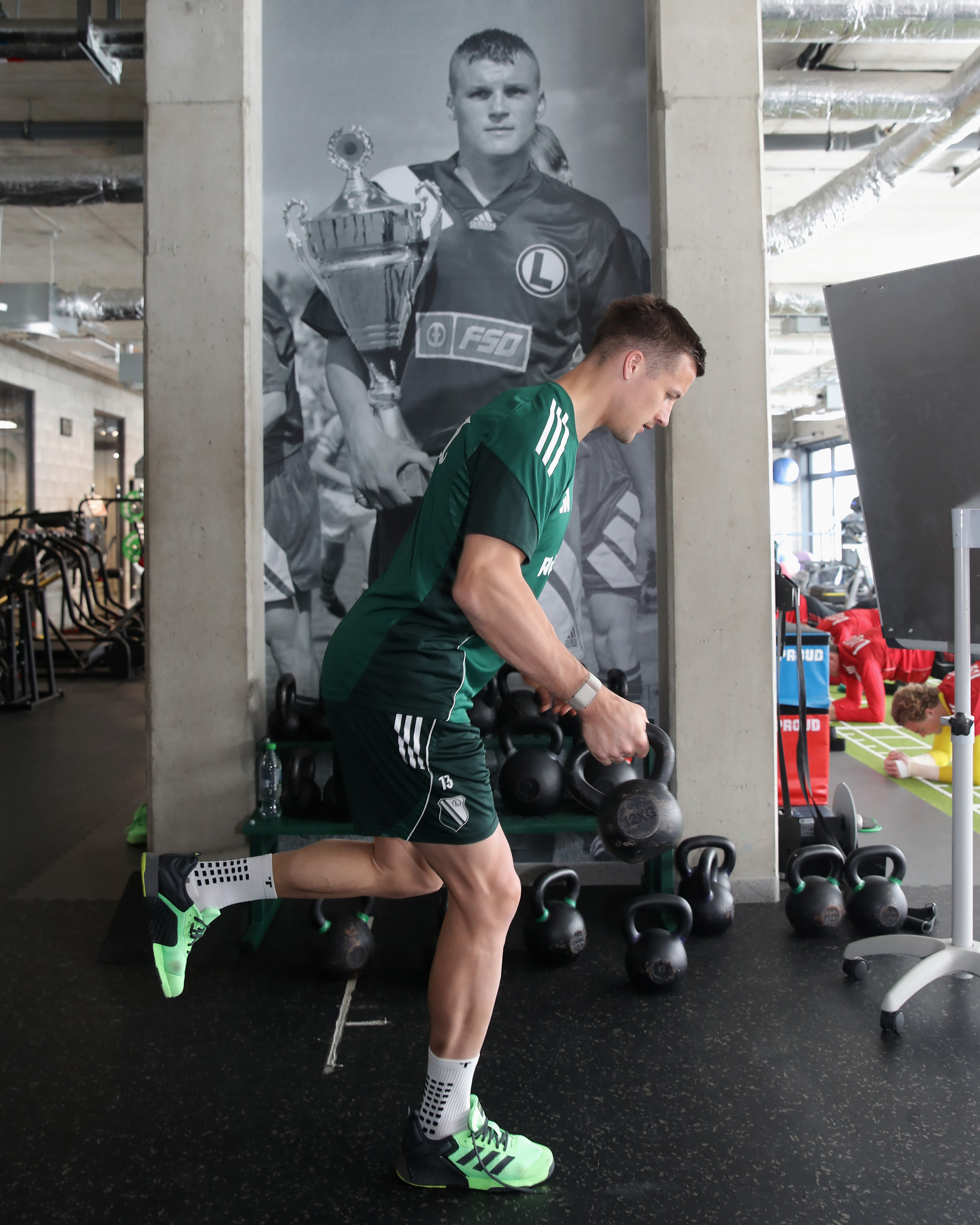 Po śniadaniu i odprawie po godz. 11. legioniści zebrali się w siłowni. Aktywacja przed treningiem na boisku trwała niespełna 30 minut. Zawodnicy korzystali z rowerków stacjonarnych, rolek i gum, wykonywali także ćwiczenia rozciągające. Kilka chwil przed południem wszyscy zameldowali się już na boisku nr 1 ośrodka w Książenicach.