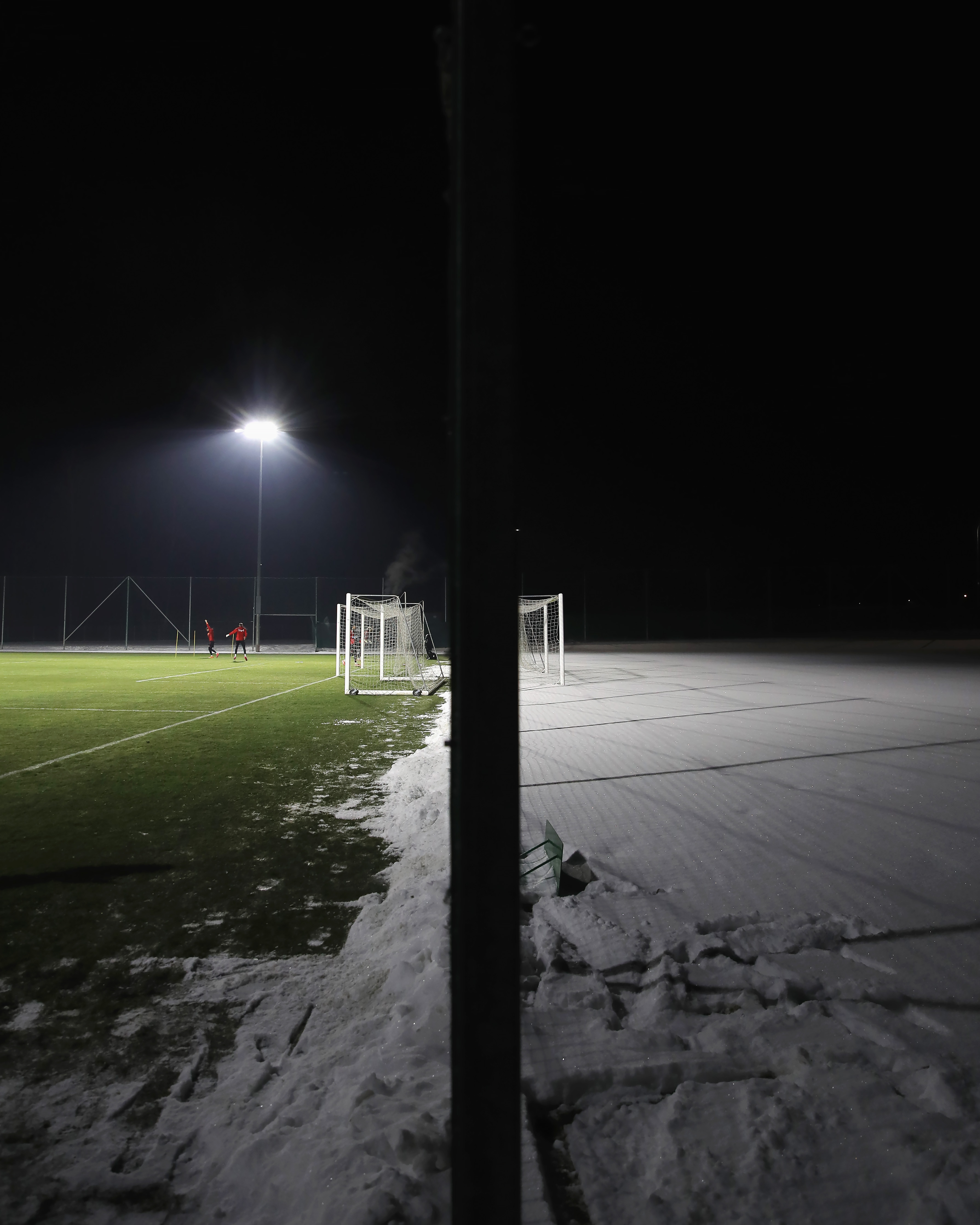 W niedzielę późnym popołudniem legioniści zakończyli urlopy i spotkali się w Legia Training Center z nowym sztabem szkoleniowym. Po półtoragodzinnej odprawie z trenerem Markiem Papszunem i jego asystentami zawodnicy zjedli kolacje i udali się do pokojów. Noc spędzili w Książenicach. Od godziny 7. w poniedziałek piłkarze przechodzili już badania i testy wydolnościowe, o których pisaliśmy w TYM miejscu. Po obiedzie, kolejnej odprawie i aktywacji w siłowni, o godz. 17. wszyscy spotkali się na znakomicie przygotowanym boisku nr 1 z podgrzewaną murawą w Książenicach. Na zajęciach na których panowała temperatura minus siedem stopni Celsjusza, trenerzy mieli do dyspozycji wszystkich dostępnych graczy. Juergen Elitim i Radovan Pankov po rozgrzewce oraz części motorycznej ćwiczyli indywidualnie. Z pierwszym zespołem trenowało dwóch młodych graczy rezerw Legii - Samuel Kovacik i Jan Leszczyński.